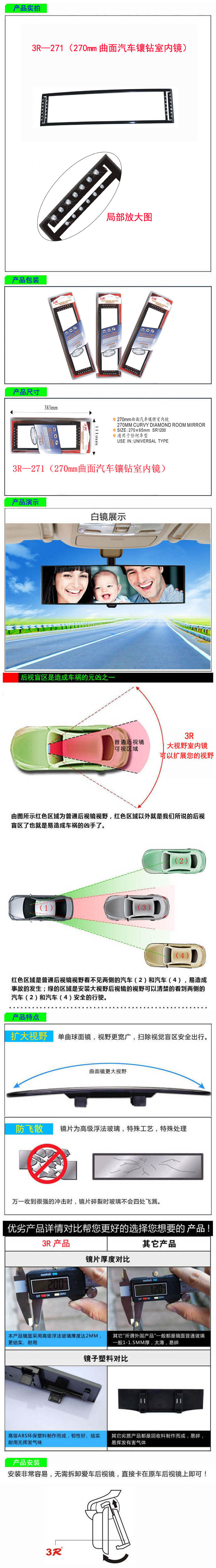 • 型號:   3R—271(270mm曲面汽車鑲鉆室內(nèi)鏡)