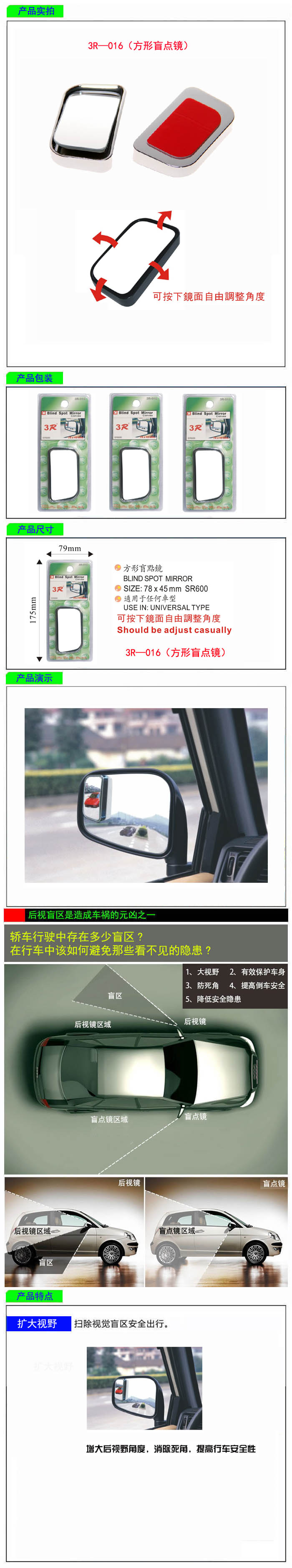 • 型號:   3R—016(方形盲點鏡)