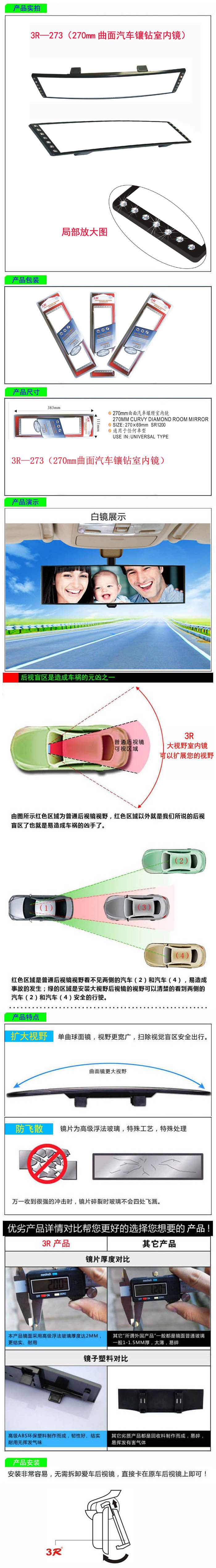 • 型號:   3R—273(270mm曲面汽車鑲鉆室內鏡)